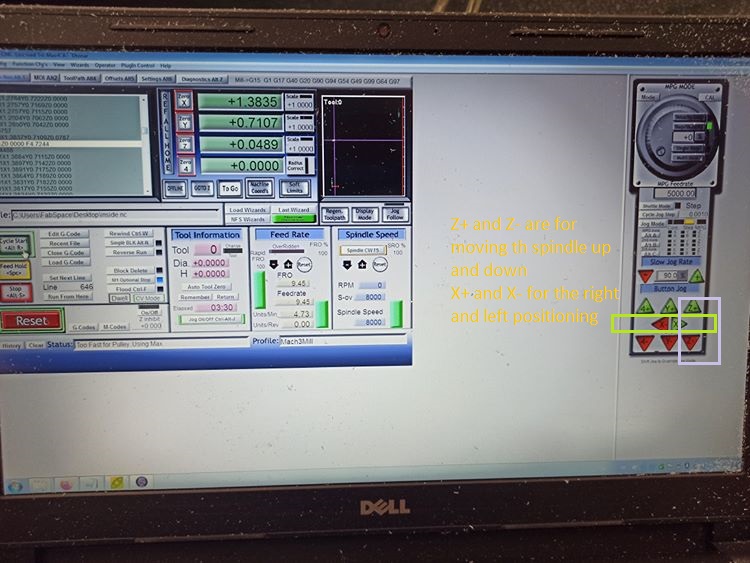 As for Z axis , we had to move the spindle carefully and lower it slowly until the end of the tool touches the surface of the plate!!