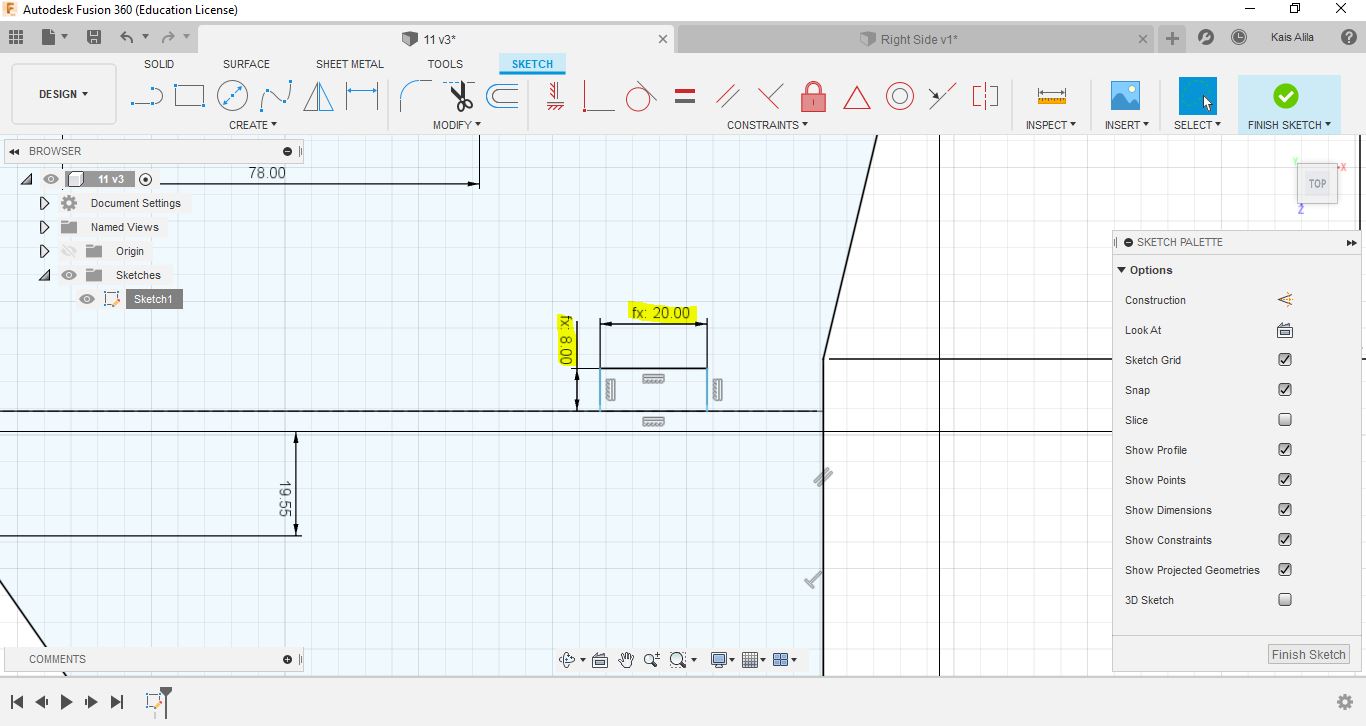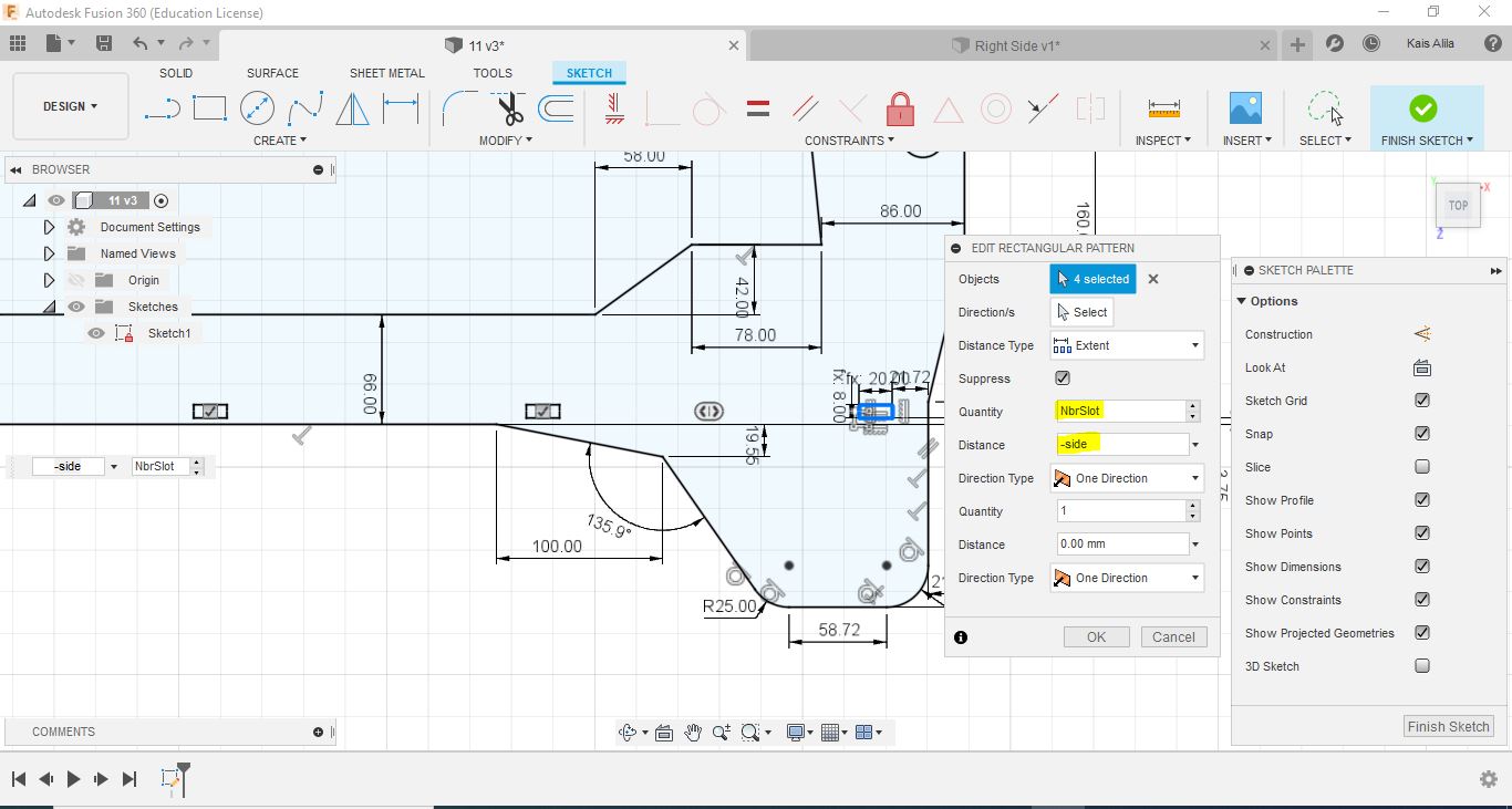 The sign “(fx:)” will appear, this means that you can modify the model after without editing the sketch.