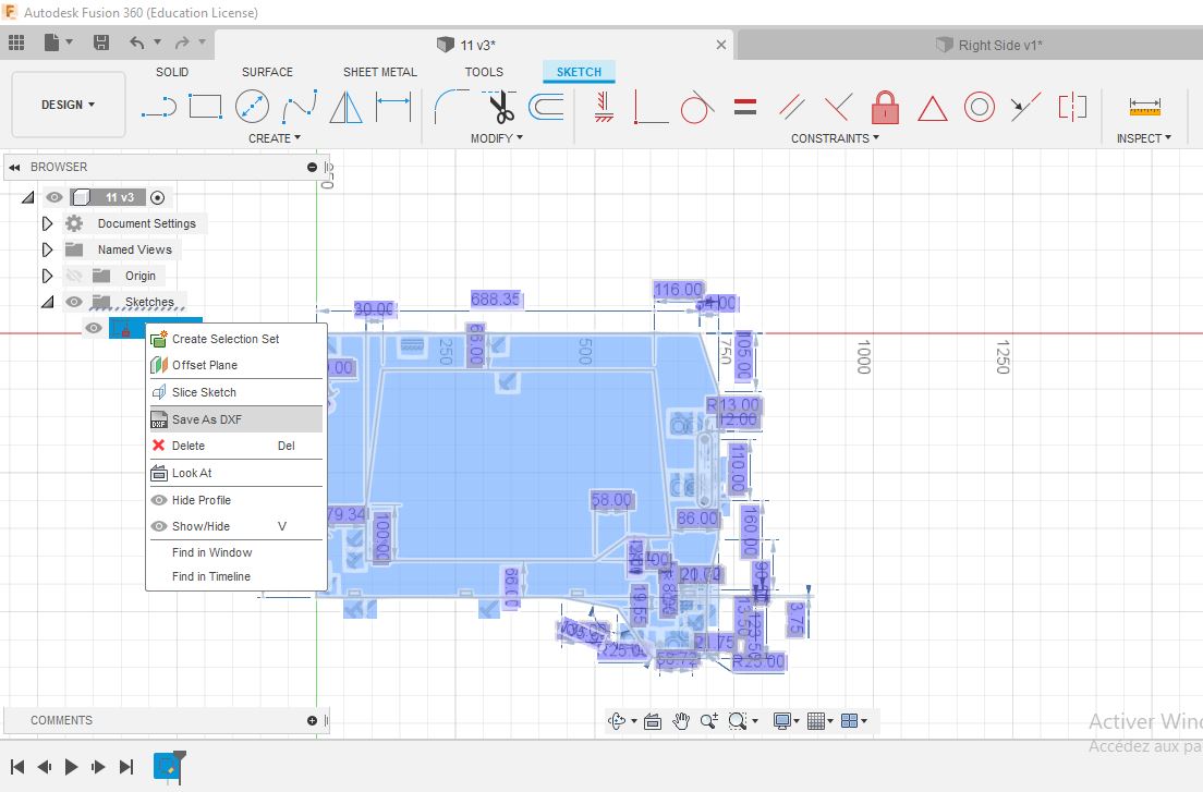 I did the same steps for the rest part of the frame then exporting to DXF format.
