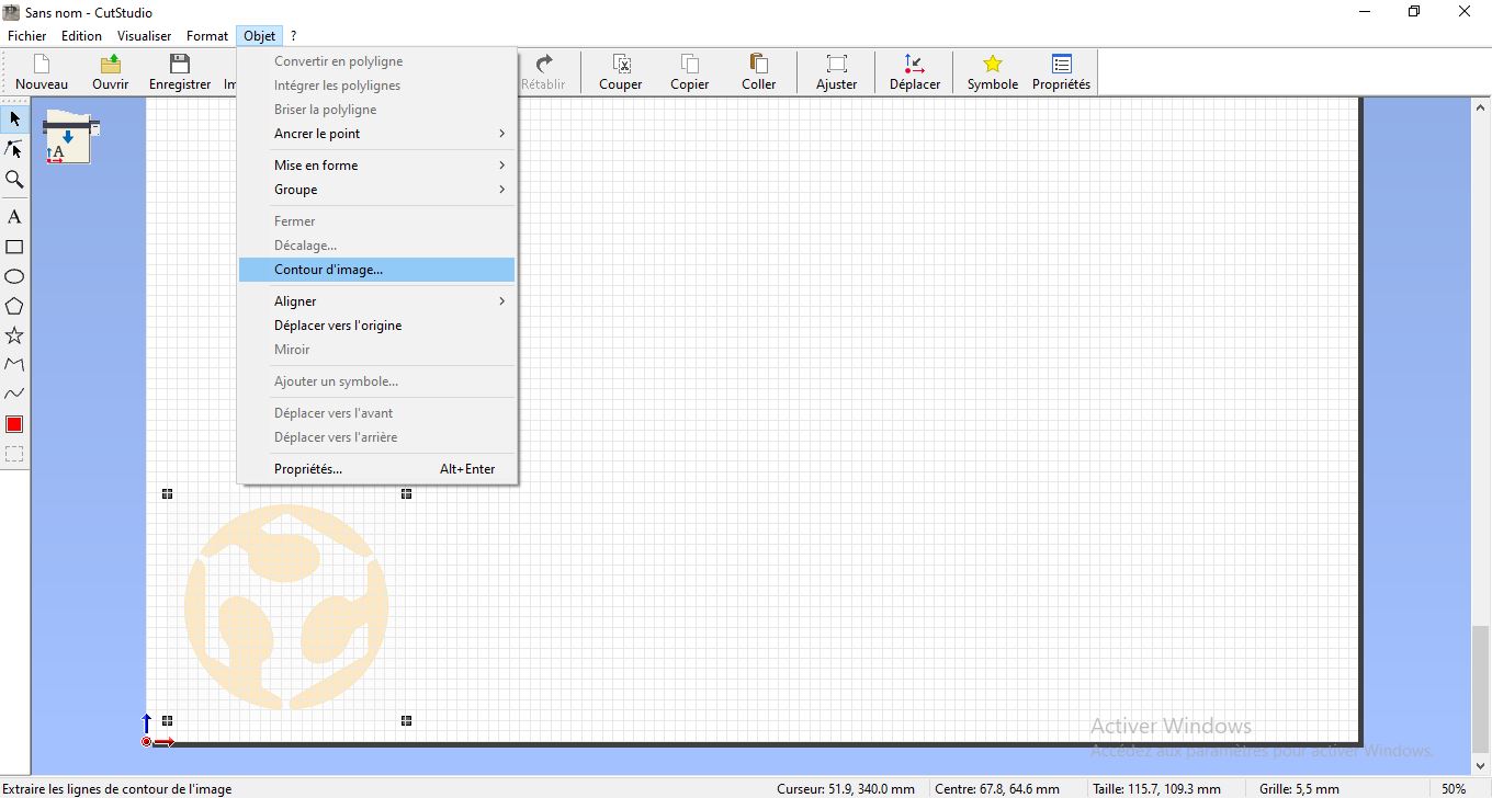 2- Extract lines and vectors using cutstudio tools. Object >> Contour image