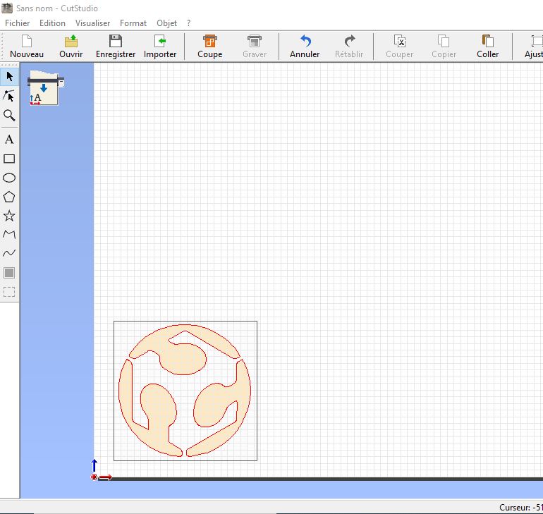 I decided to cut the Fablab logo. So to get the vectors from the logo, I’ve just used a JPG image and then convert it to vectors using the machine software.