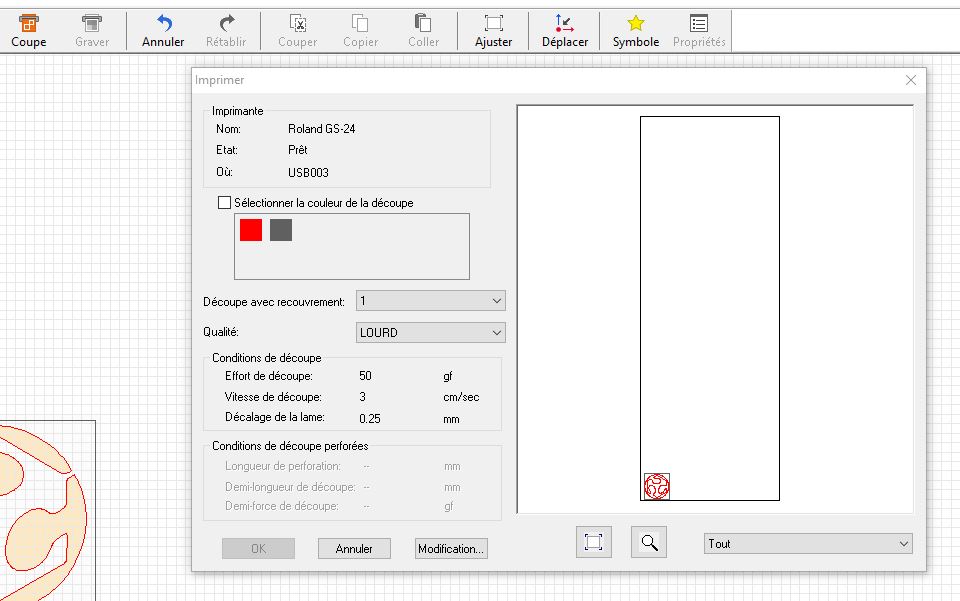 On the ROLAND GS-24 … I’ve set the Force of pen on 50gf and I’ve decrease Speed @ 3cm/s I’ve charge the media inside machine and get from machine the real dimensions.