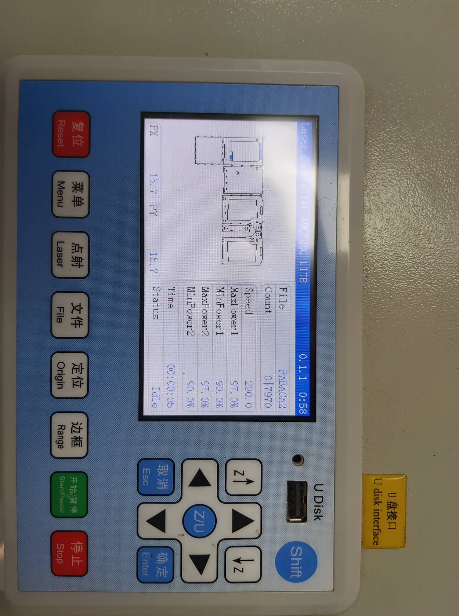 10- Put the MDF in the machine and then set the focus, fix the origin , and then press range to check the job area