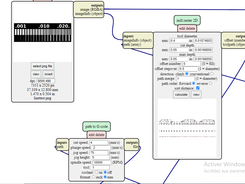 linetest.png to milling the traces with 1/64 (0.4mm)bit;