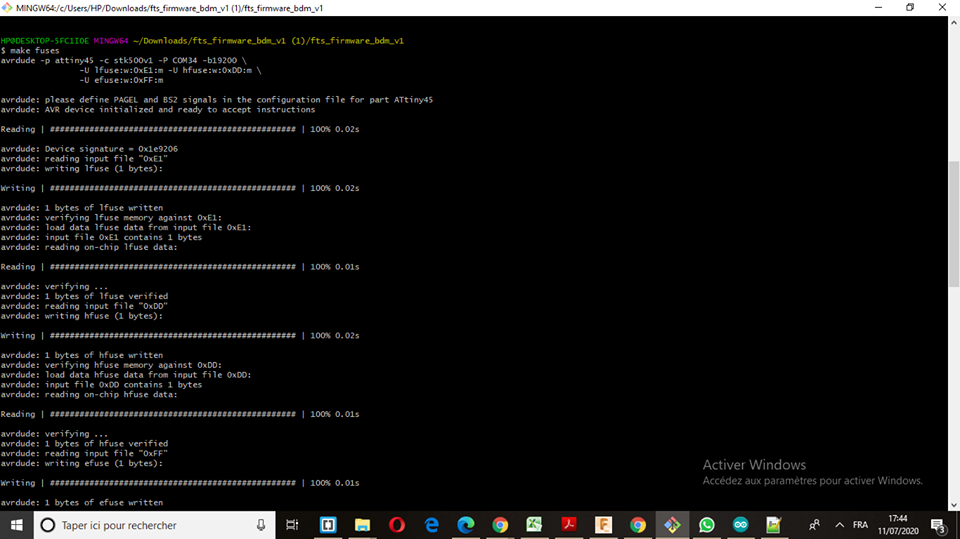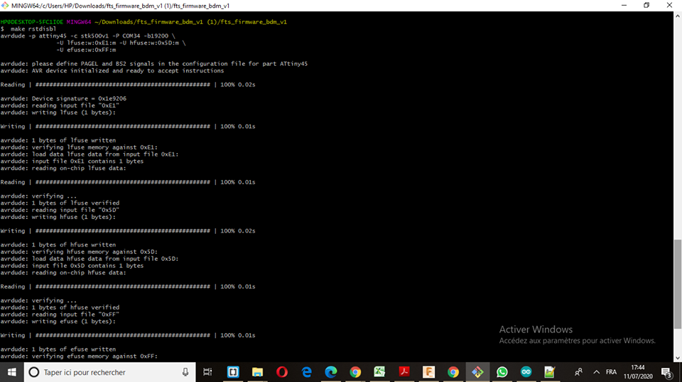 Now disconnect the arduino and all the jumper cables and keep the fabISP connected.