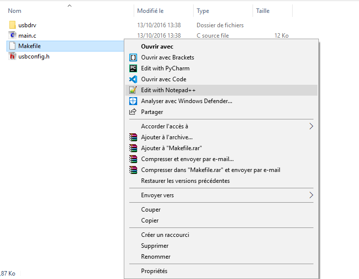 Disconnect your arduino and extract the Zip file that you downloaded previously then open the makefile , we need to make some changes so it becomes able to work with arduino.
