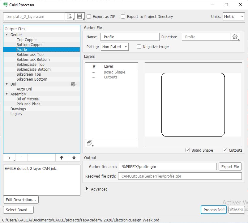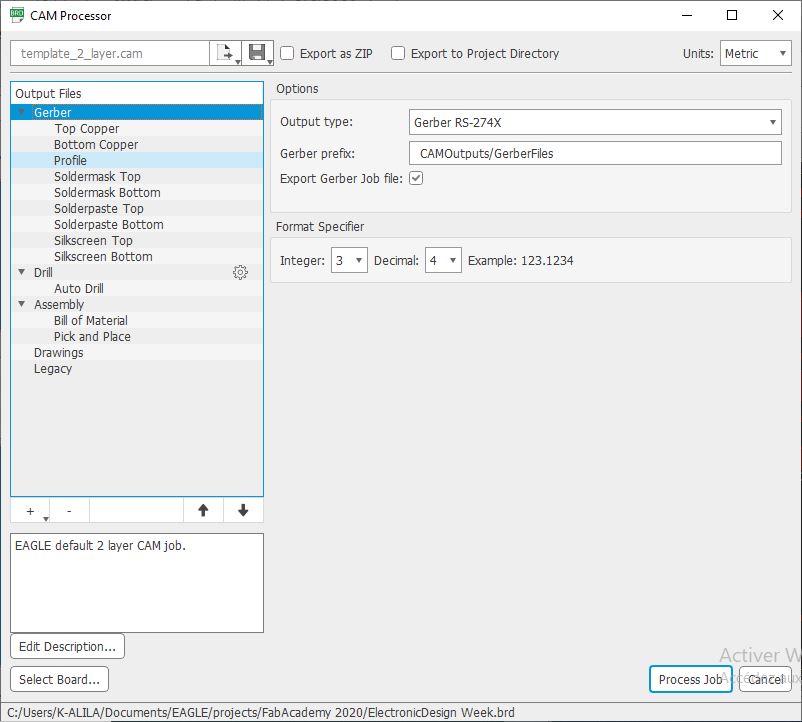 b. With this tool you can choose the layers and the job for your board and the export it gerber For example we usually need the Top Copper layer, the Bottom Copper and the Profile. It depends on your manufacturing process and your board complexity
