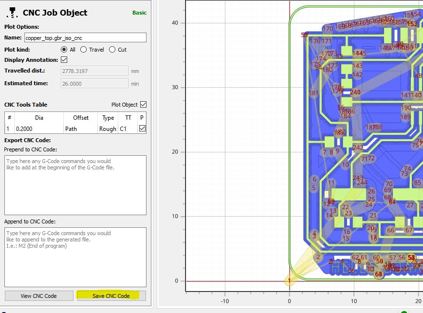 e. generate the tool path and finally you will have the g-code by double click on cnc job coammand