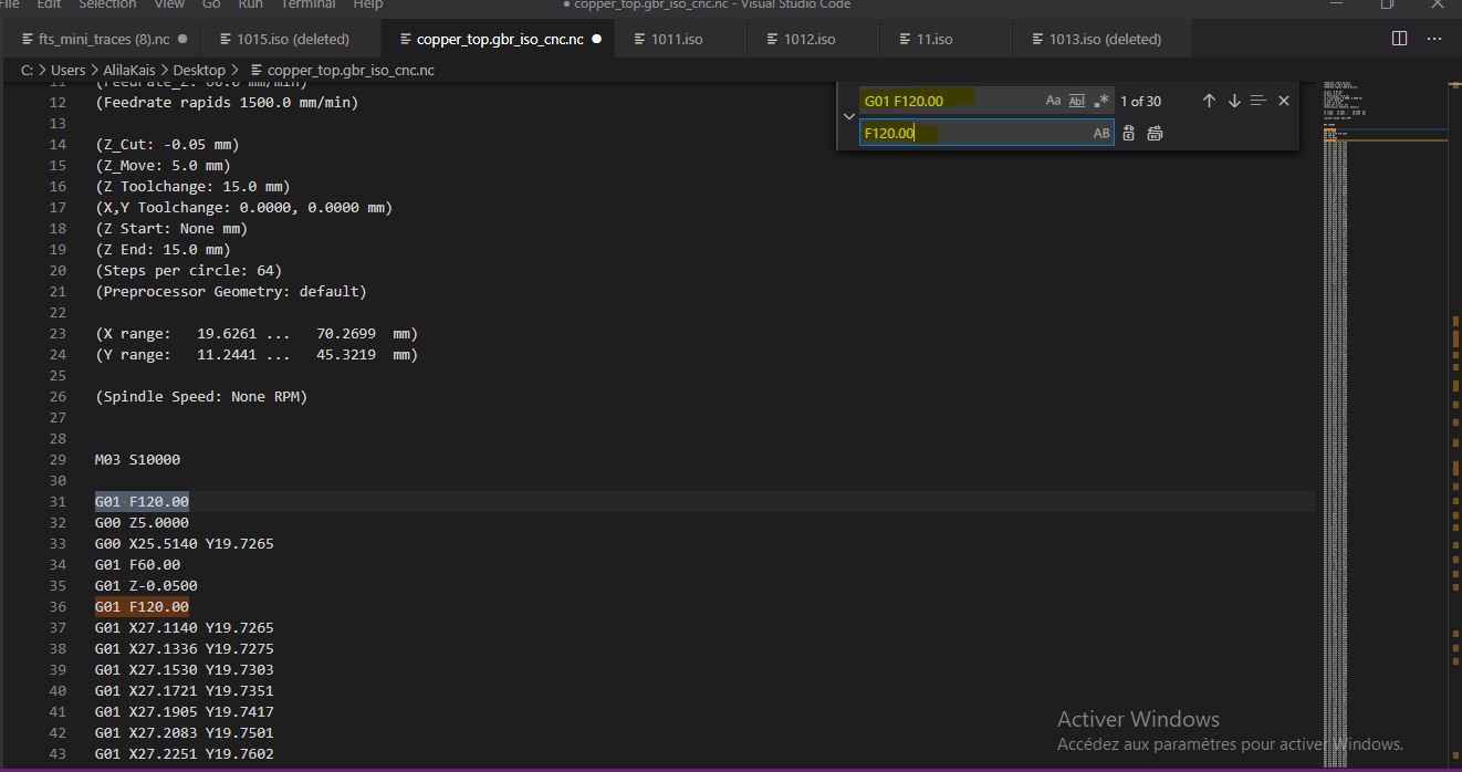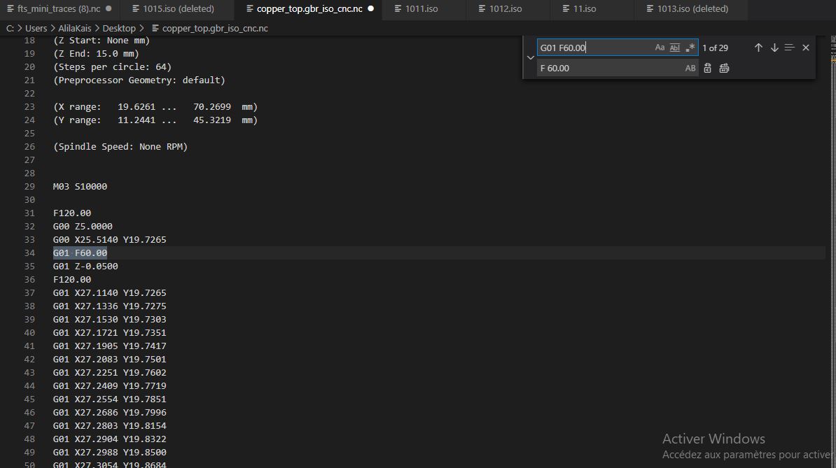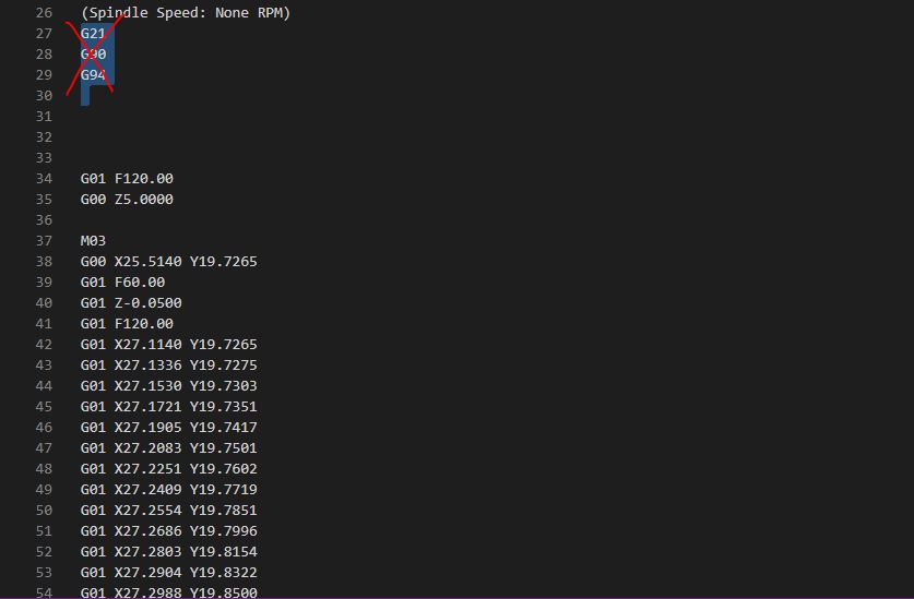 The machine command software was too old and do not accept many Gcode commands. So When we export from Flatcam an NC file we do some modifications.
