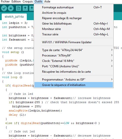 Based on ATtiny44-84 datasheet I’ve choose to use PIN7 Analog Input for Button as and PIN3 as PWM for LED.
