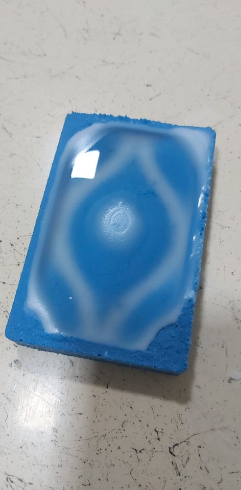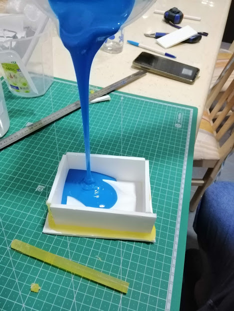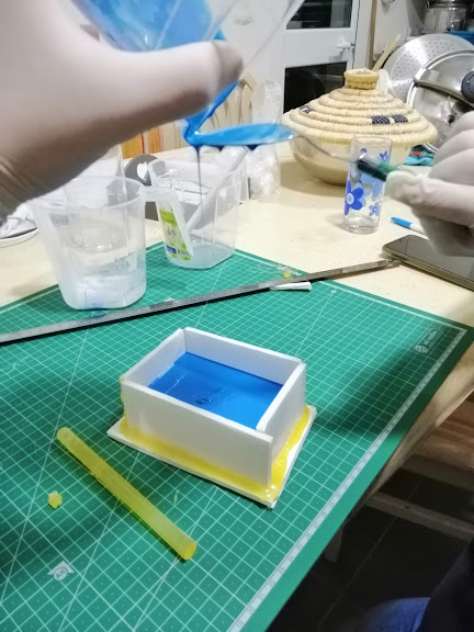 After calculating the volume I mixed 80ml of silicone with 80ml of catalyser till the two components be homogenized.