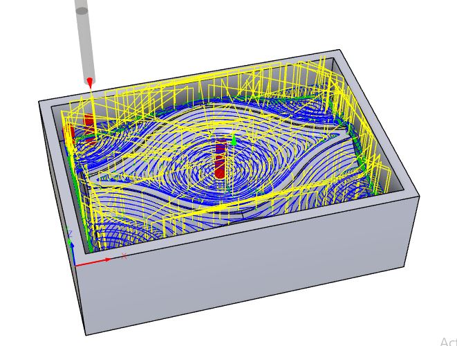 In the previous image we can see that the inside curve is not smooth and good at all and as shown in the simulation images and the result image it was like rough machining.This issue will affect the mold quality and of course the copy quality and precision.