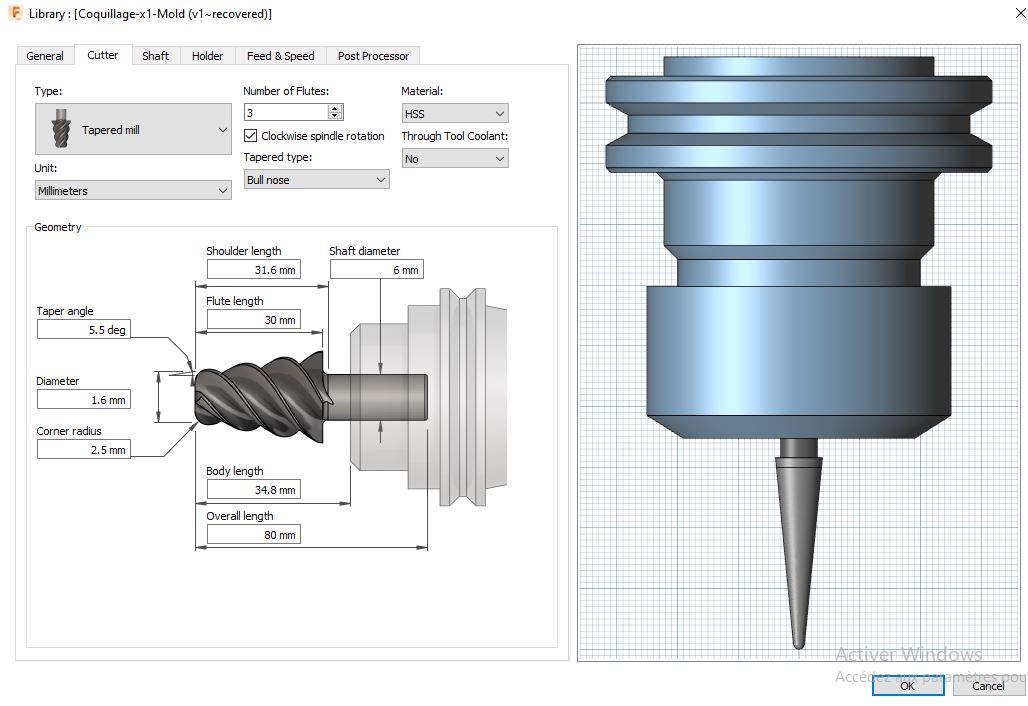 Using Solidworks I’ve obtained its real 3D model. I exported the STEP file to use Fusion 360 manufacturing tool to generate the g-code for the CNC.