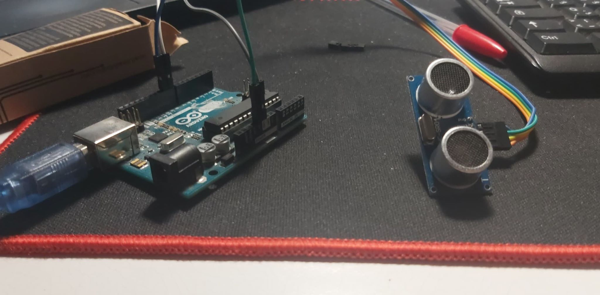 An ultrasonic sensor is an electronic device that measures the distance of a target object by emitting ultrasonic sound waves, and converts the reflected sound into an electrical signal. Ultrasonic waves travel faster than the speed of audible sound. It is used primarily as proximity sensors. They can be found in automobile self-parking technology and anti-collision safety systems. Ultrasonic sensors are also used in robotic obstacle detection systems, as well as manufacturing technology.