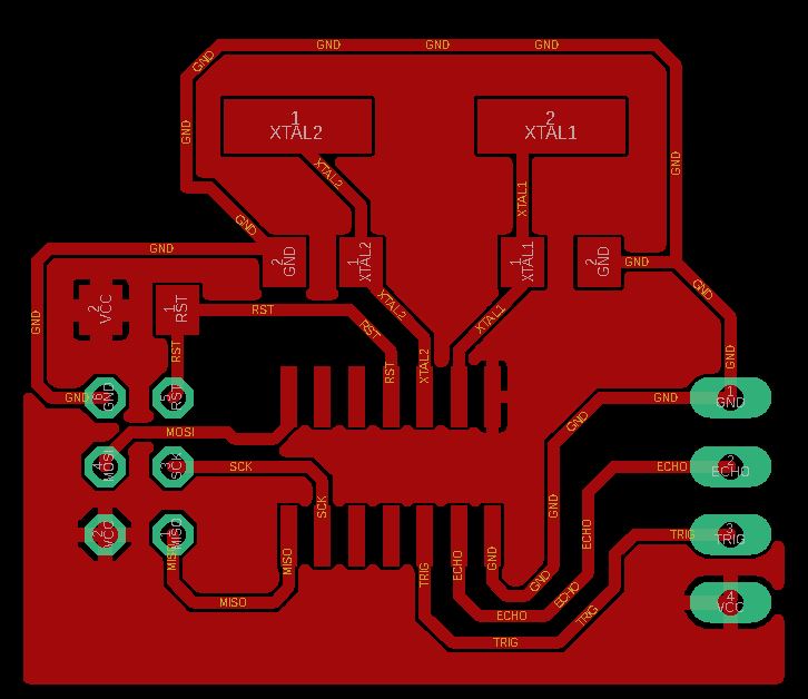 For this week I decided to make a samll board to test the ultrasonic sensor. So i designed the board baser on ATTINY44 and a I added a carrier for the sensor on the same board and then you can use it as SPI slave on your robot.