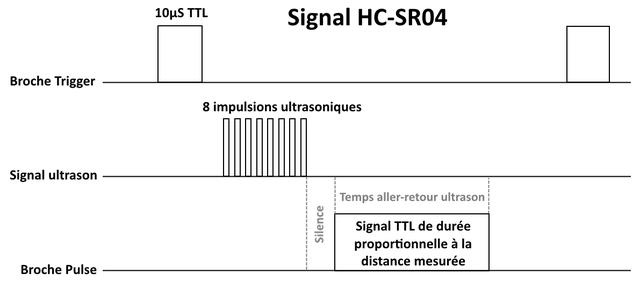 to generate the ultrasound you need to set the Trig on a High State for 10 µs. That will send out an 8 cycle sonic burst which will travel at the speed sound and it will be received in the Echo pin. The Echo pin will output the time in microseconds the sound wave traveled.