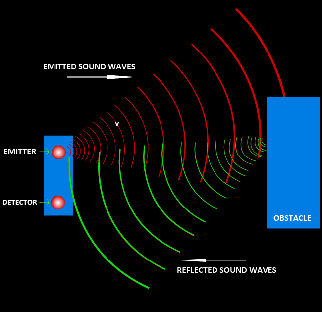 Ultrasonic sensors have two main components: the transmitter (which emits the sound using piezoelectric crystals) and the receiver (which encounters the sound after it has travelled to and from the target).