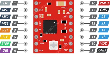 RST is also an active low input. When pulled LOW, all STEP inputs are ignored, until you pull it HIGH. It also resets the driver by setting the internal translator to a predefined Home state. Home state is basically the initial position from where the motor starts and it’s different depending upon the microstep resolution.