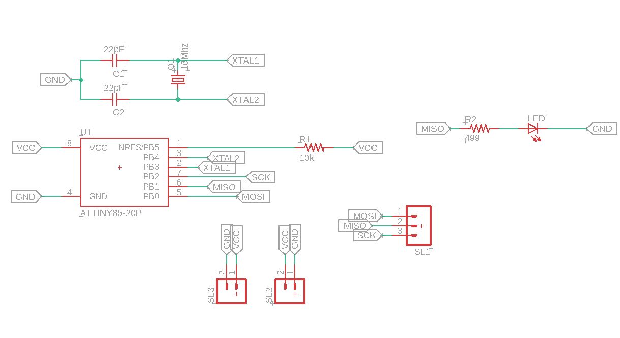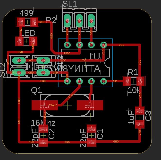 as first board I will use the comercial Arduino uno as I2C master and it will control the other boards. For the other boards I made two identical boards with Attiny85 processor.
