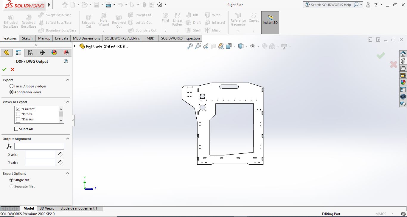 First I exported from solidworks the dxf file for each side of the machine and then i used DeepNest an open source software for nesting to gain material time and surface.