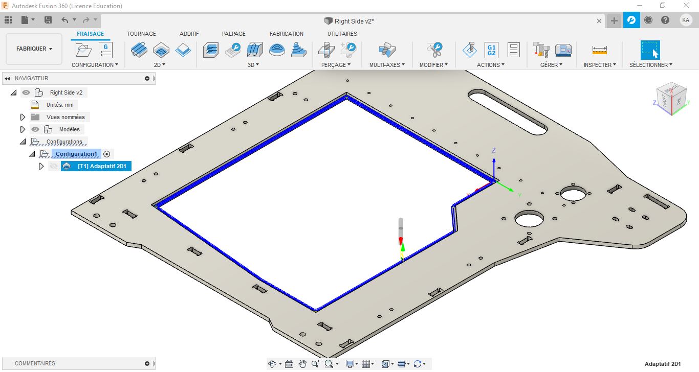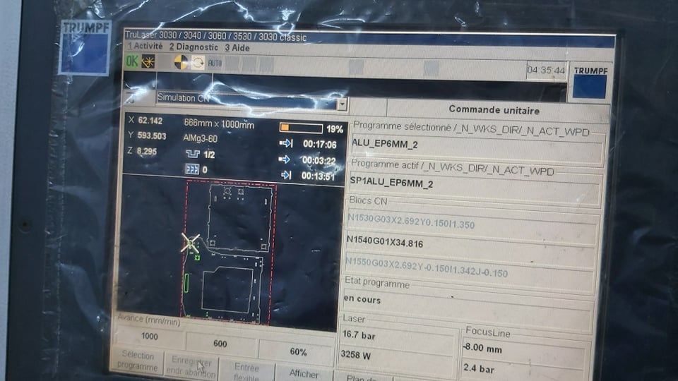 I used laser cutting to manufacture the aluminium frame. I have 3 aluminium sheets 6mm thickness to cut. we don’t have a big laser machine for metal in our fablab, so I went to company to make it using Trumphh laser machine : Trulaser 3030. It’s a very powerfull machine able to cut 15mm thickness stainless steel sheet very fast.