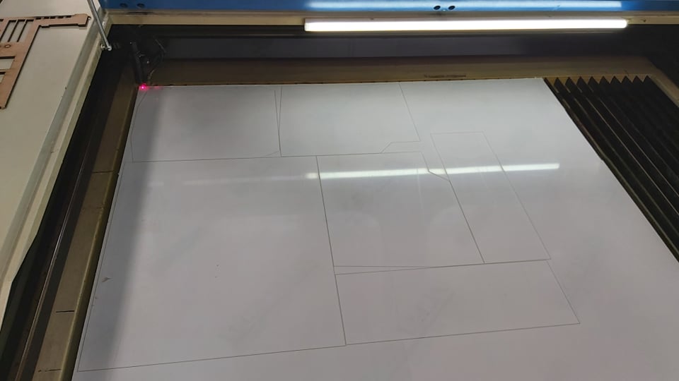 I also used laser cutting to make the protection frame and enclouser from 4mm plexiglass I did the same steps to have the dxf file then deepnest to optimise the surface and strat cutting using our fablab laser cutter.
