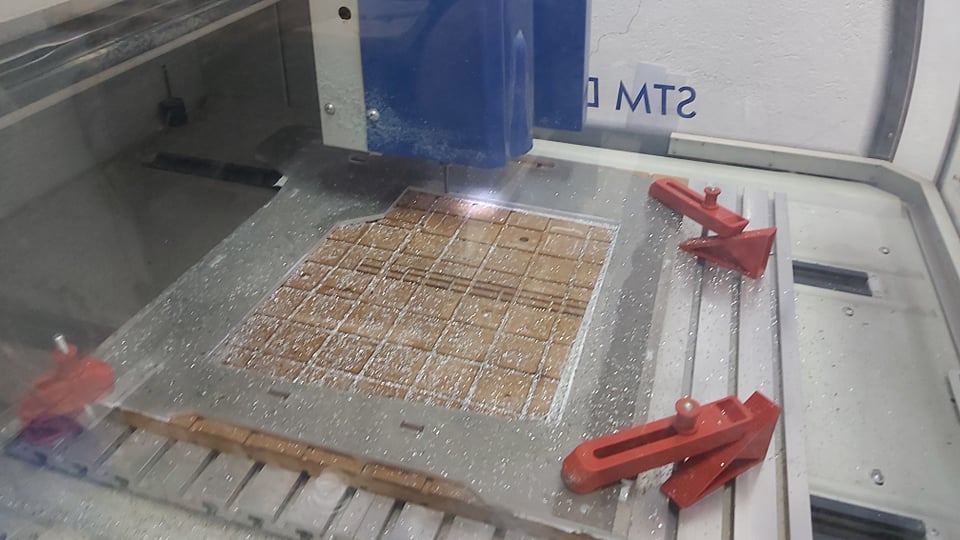After the cnc milling phase, I started the drilling phase but manually. First step is to cut a mask using 3mm MDF and then start drilling.