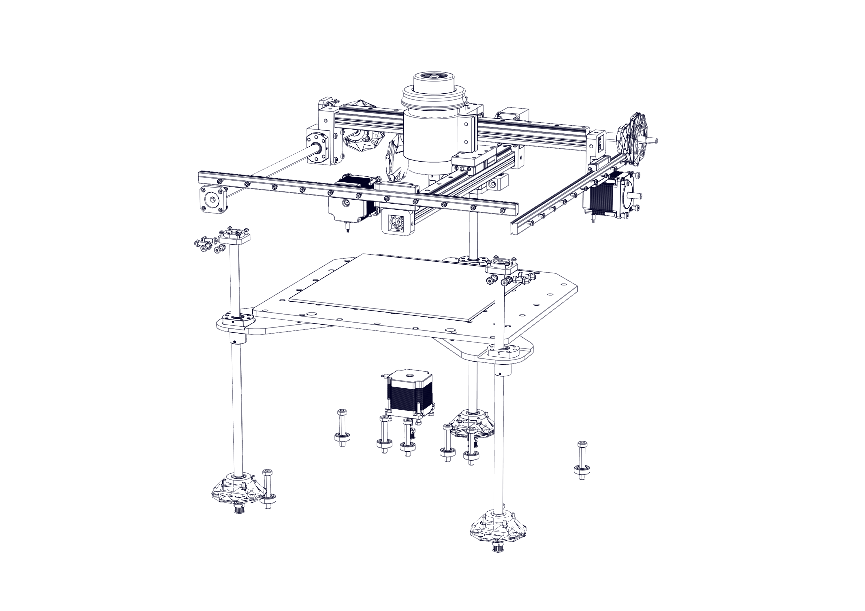 I’ve chosen a wood frame (Mdf 8mm Thikness) and guide all the system using ball screws and rods