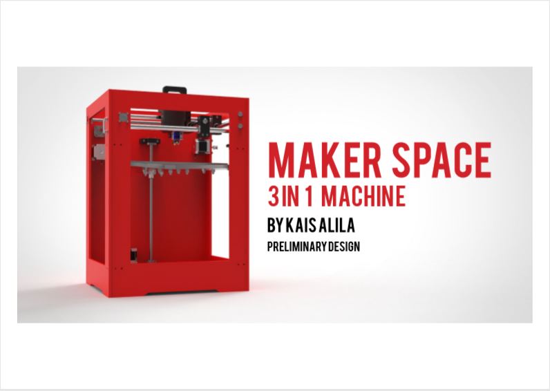 The purpose of MakerSpace is to be 3 in 1 machine that can replace 3 numerical machines in the fablab like 3d printing, Laser engraving and CNC router.