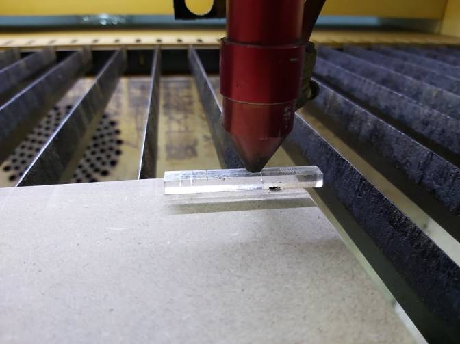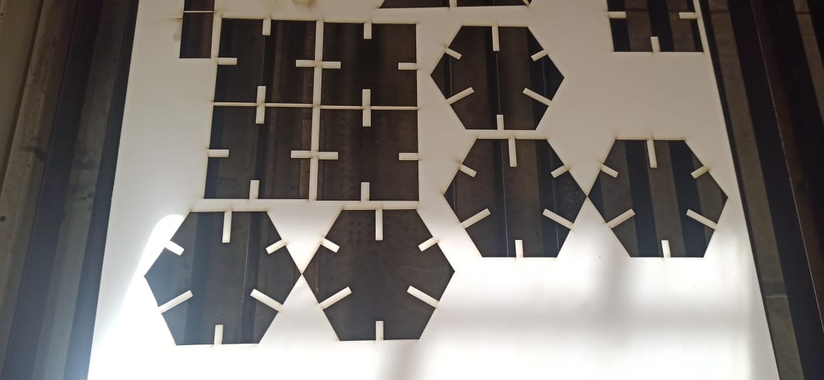 We did also a Kerf test: Kerf is determined by material properties and thickness, the focal length of the lens and the gas used while cutting, I’ve designed a simple test in order to find a kerf. As in the previous picture we have drawn 9 rectangular pieces (10mm each) for 10 vertical cuts. This for make an average on the long distance.