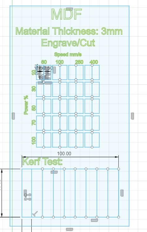 Make test part(s) that vray cutting and dimensions, to characterize our laser cutter.