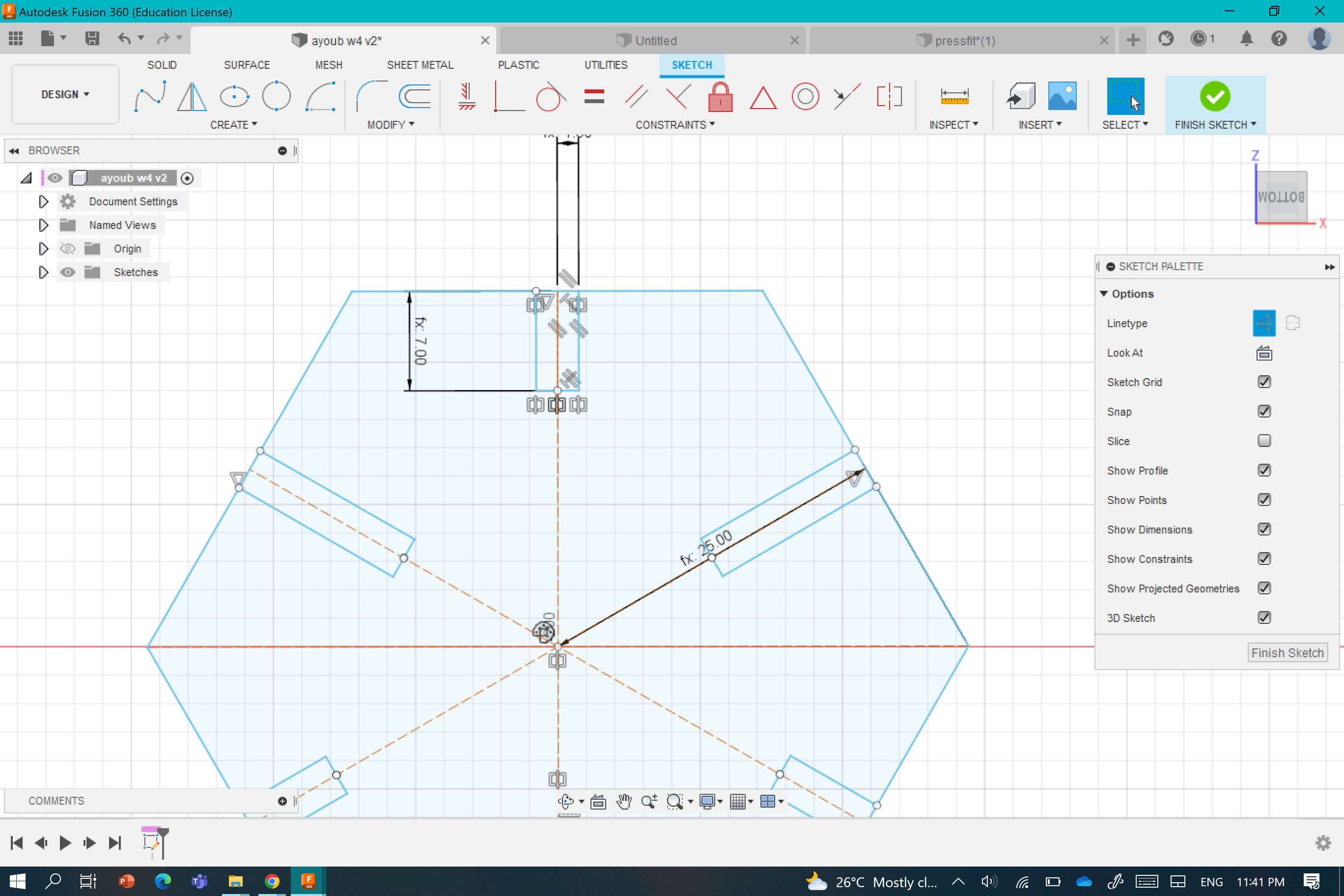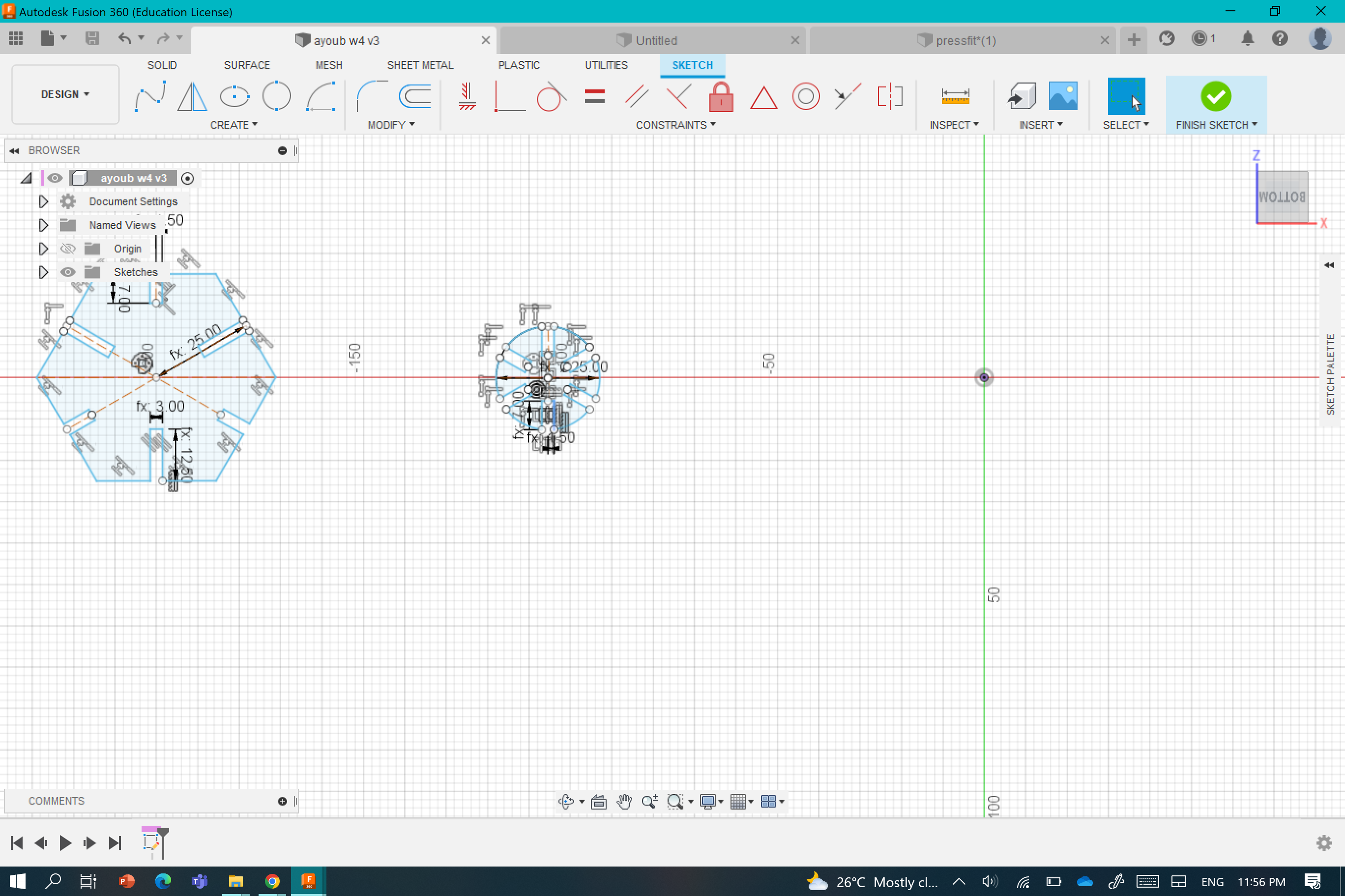 - Before using the machine, We started designing our own Test Template using Fusion 360 in 2D sketching.