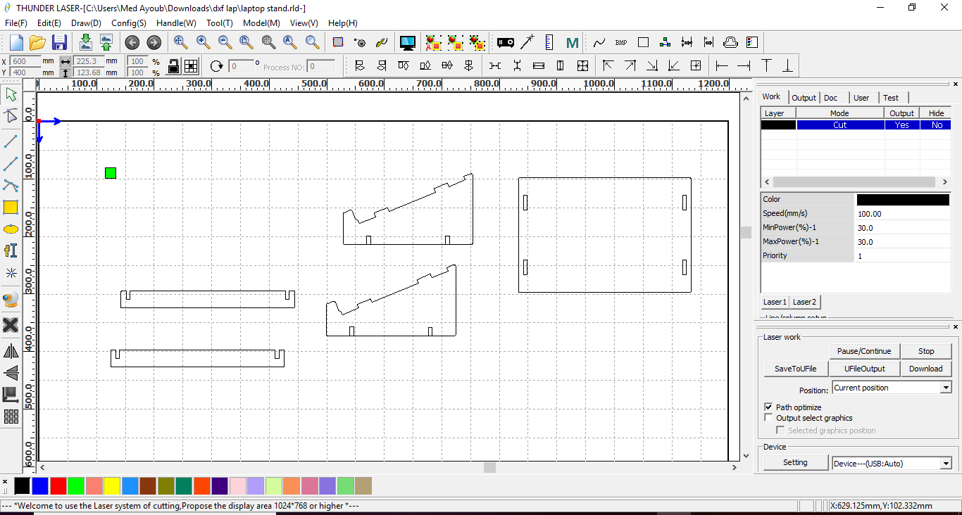 - I choose these setting to cut my laptop stand with the laser cutter :
