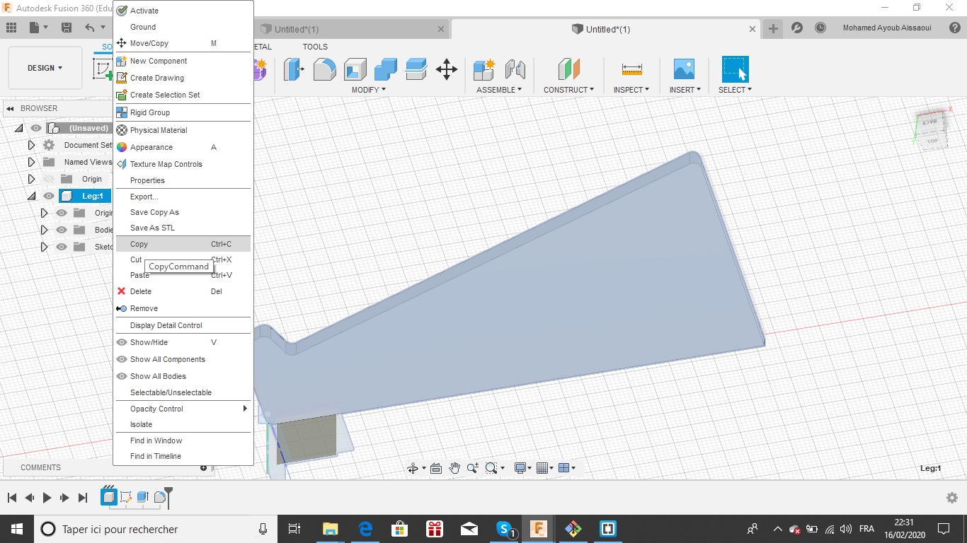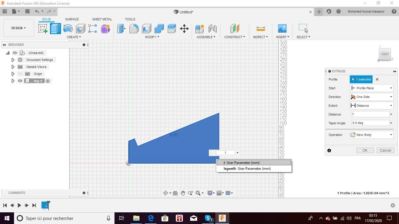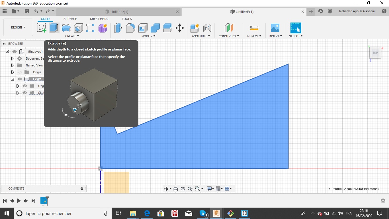 5_I used the extrude tool to add depth for the designed leg as it is shown below .
