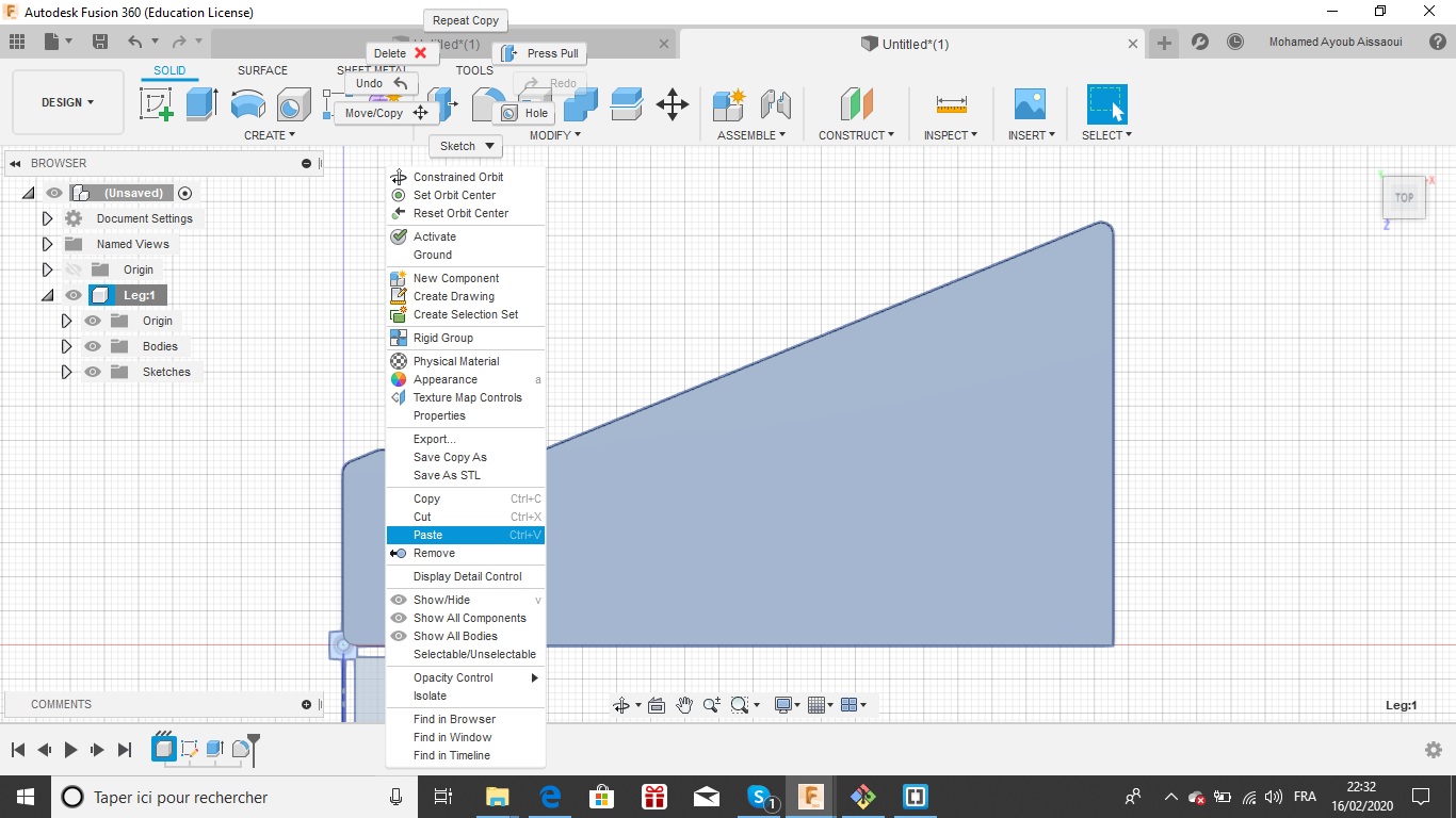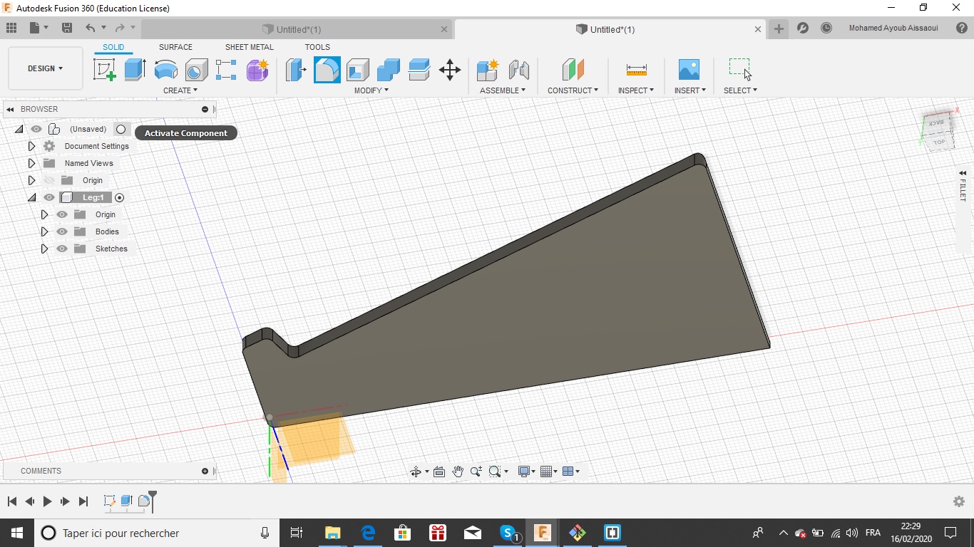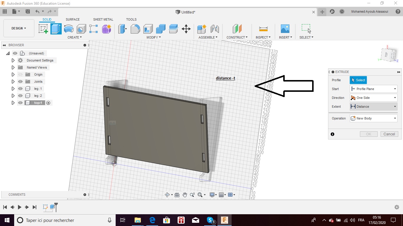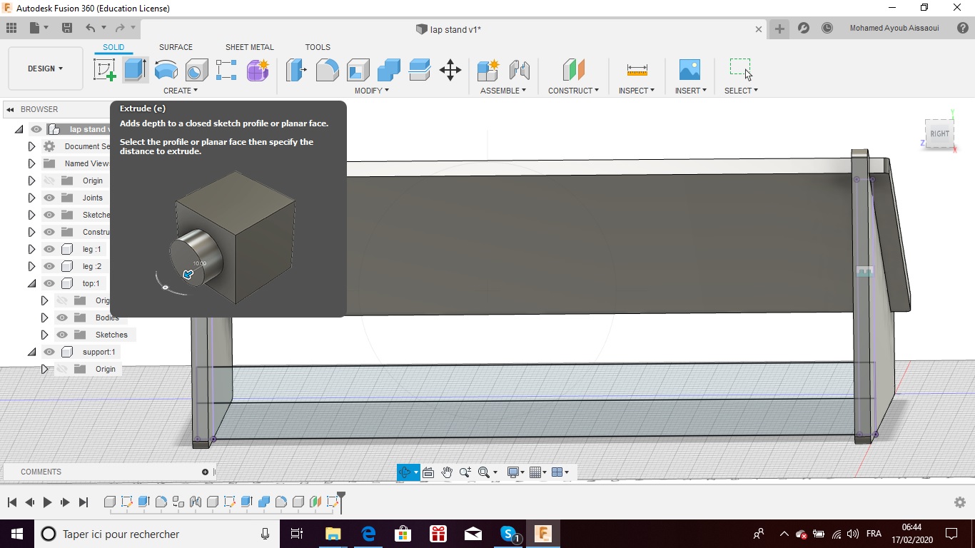 5_I used the extrude tool to add depth for the designed leg as it is shown below .