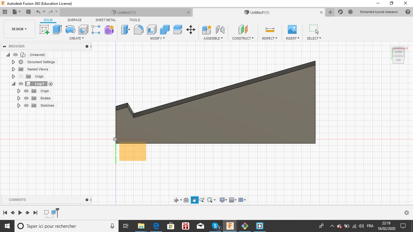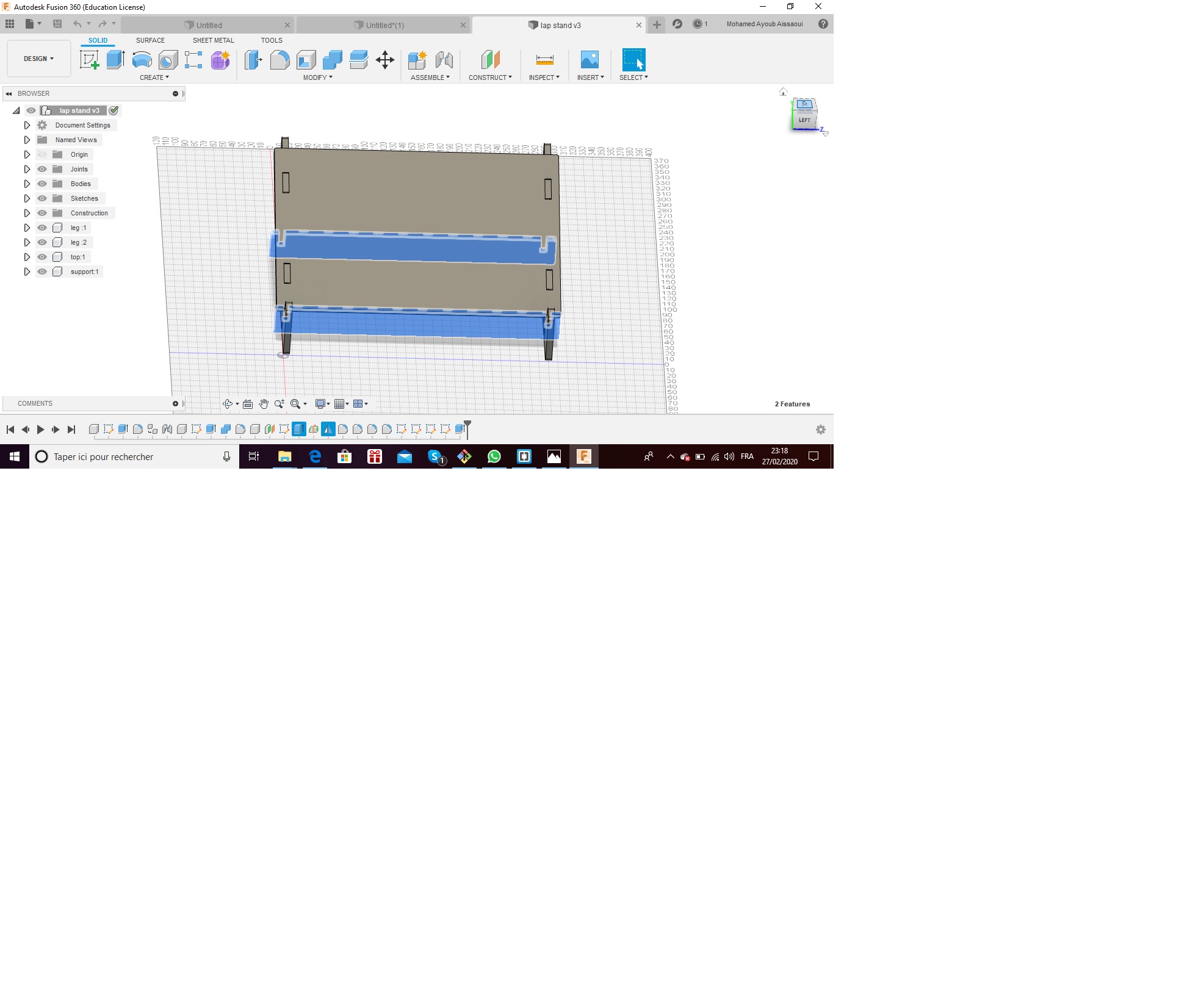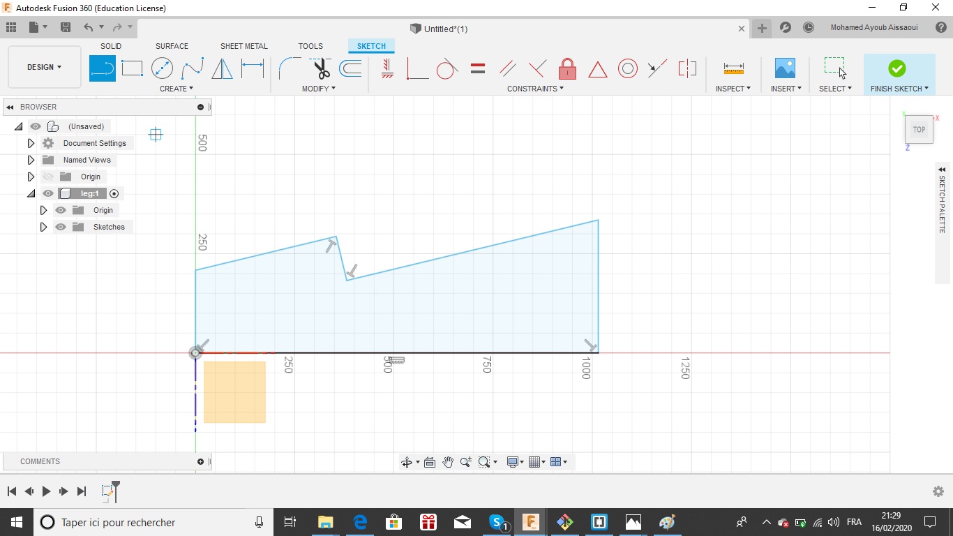 8_After I made the two legs, I started to design the top of the laptop stand. I made a 2 points rectangle.