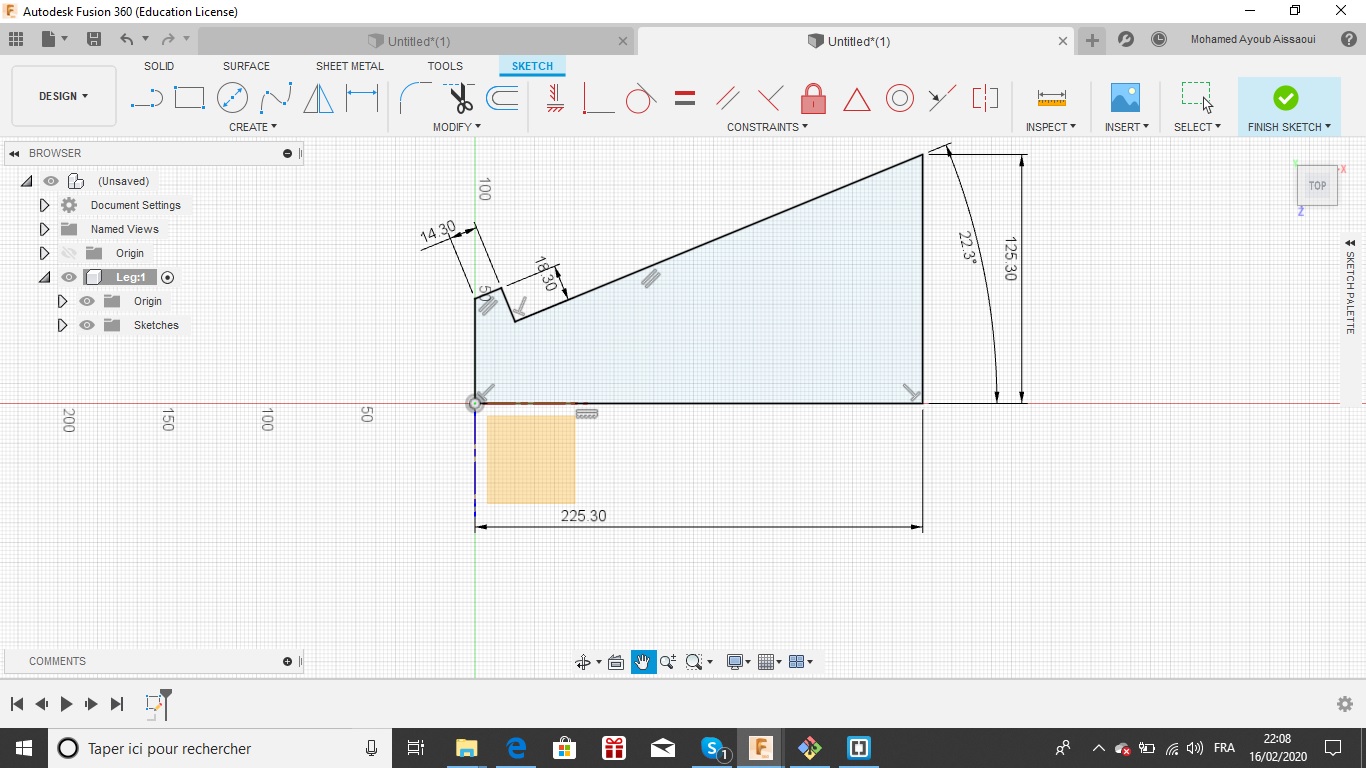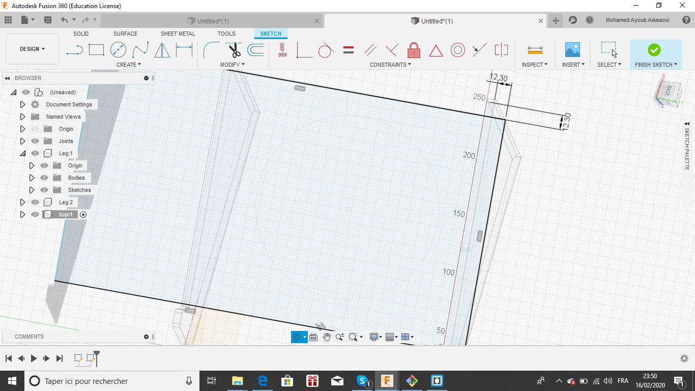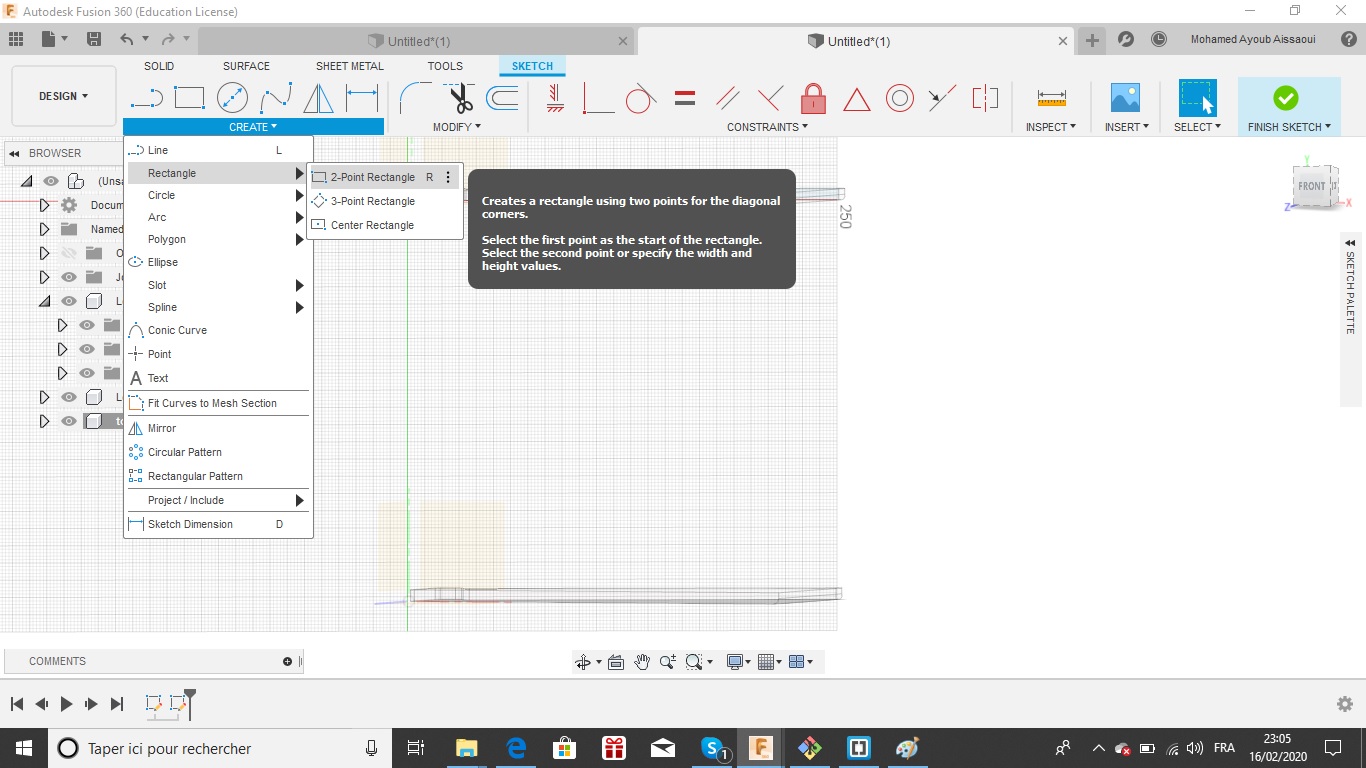 8_After I made the two legs, I started to design the top of the laptop stand. I made a 2 points rectangle.