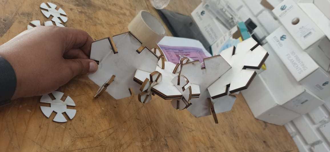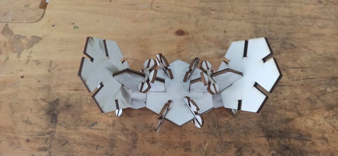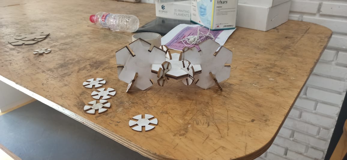 I designed two shapesa Hexagon and a small circle with a different size, that could after assemble it in a different ways and by next were the steps I used to do that: