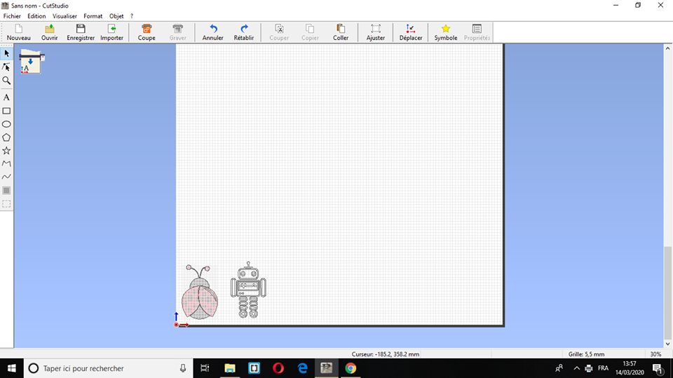 1- I imported the logo in the cutstudio software ,I fixed the cut parameters. After the software automatically converted the logo to a vector-based image for smooth cutting :