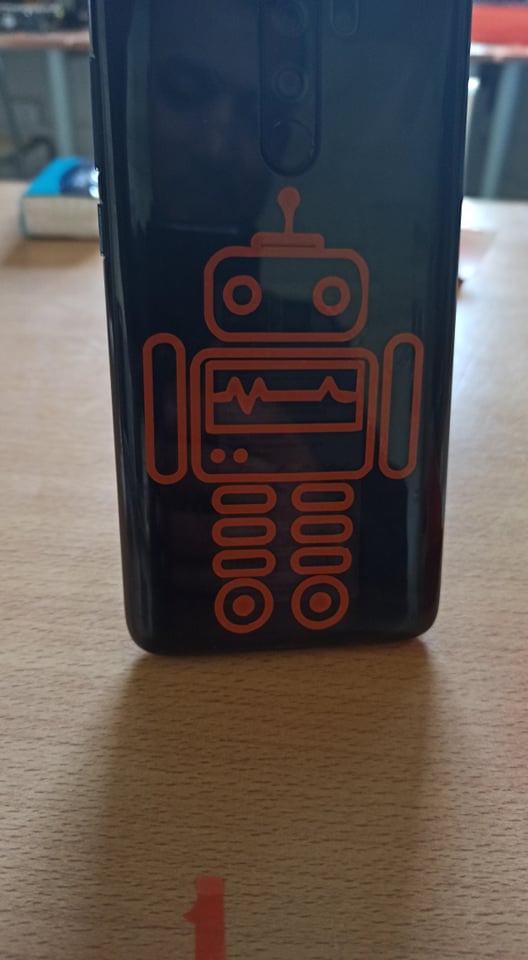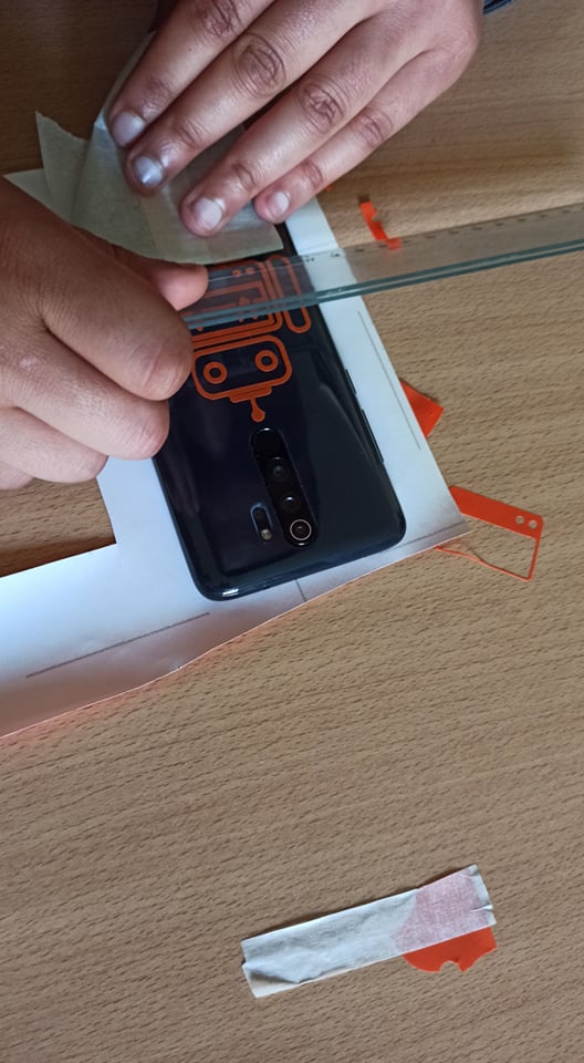 4- I used the painters tape to move the logo from the vinyl material to the new surface (my Phone).