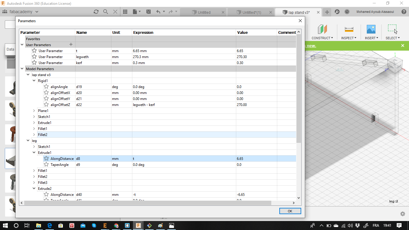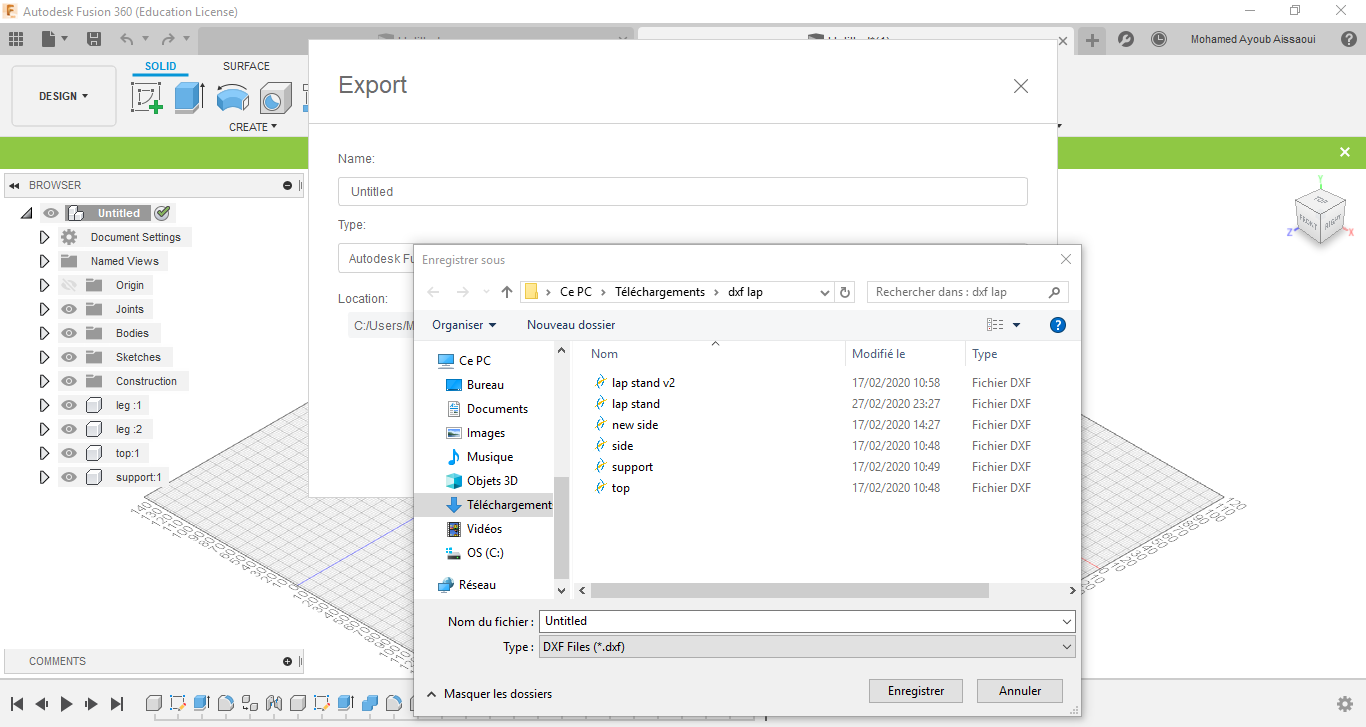After that I exported each part of my design (The Top ,the two sides and the supports)as a DXF files to start cutting them by the laser cutter .