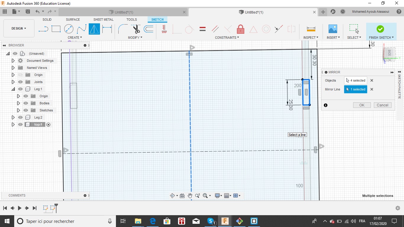 9_ I designed two perpendicular sketch lines then I used the mirror tool to make 4 copies of the rectangle in the other sides