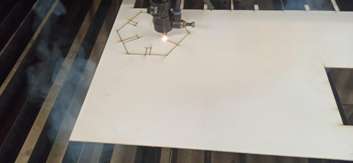 I imported the DXF files to THUNDER LASER program to start the cutting operation , knowing that I used the kerf test from our group assignment to have the right and the suitable cut.