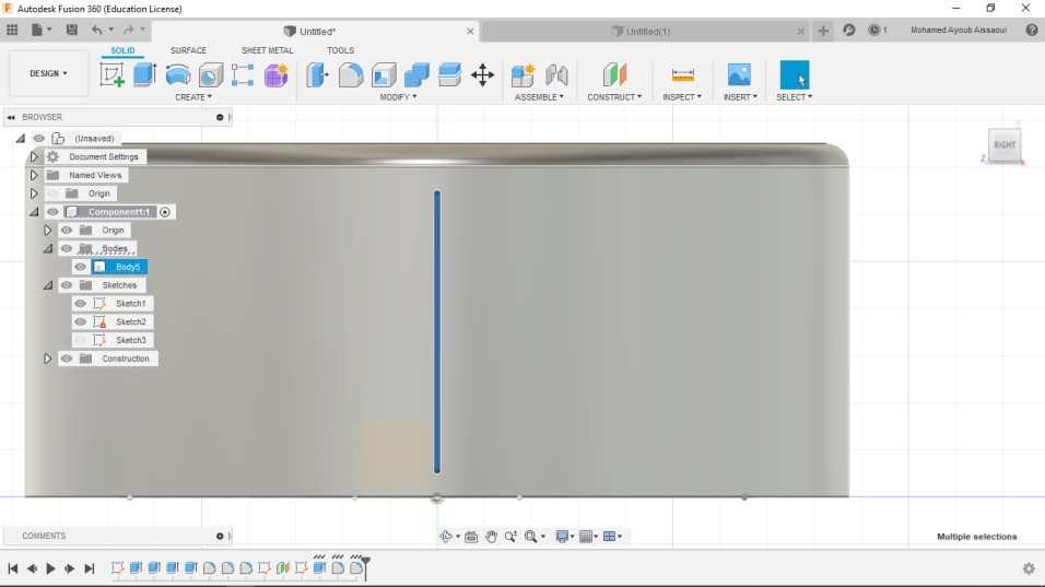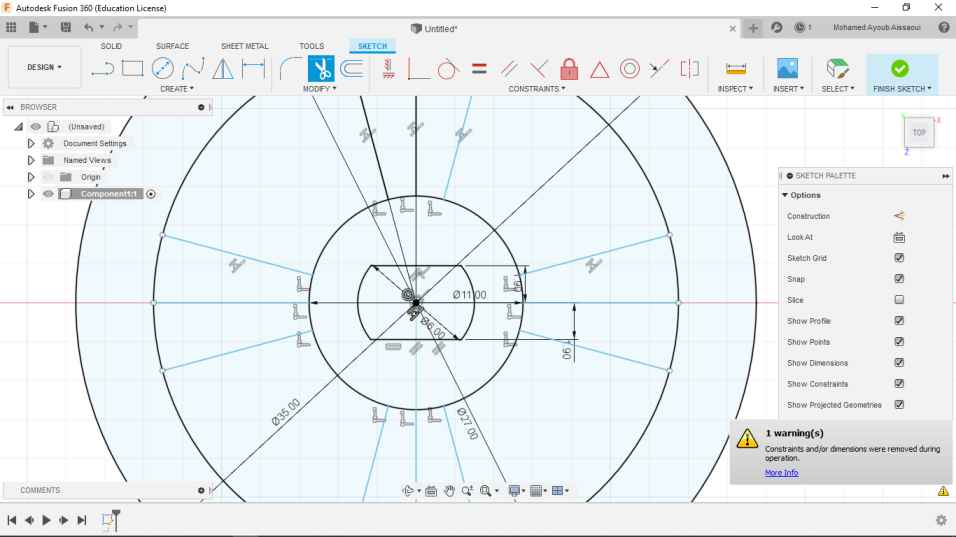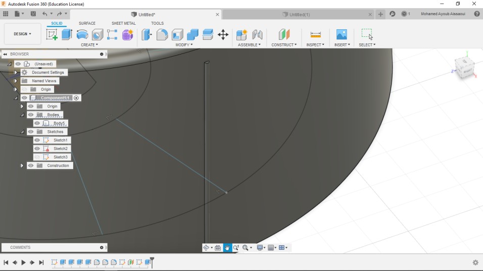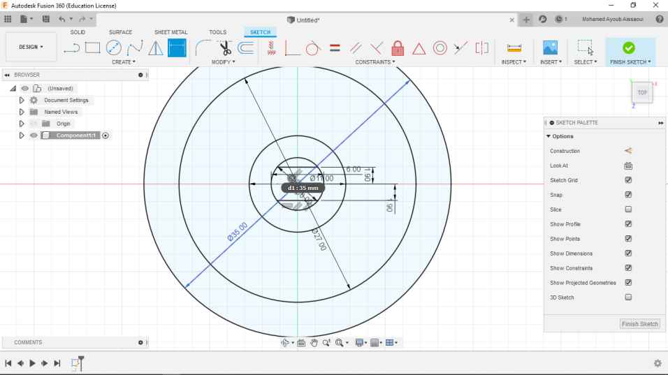 4- I turned the top face of my design and i started a new sketch on it , then i created a small circle then i extruted it as it shown below :