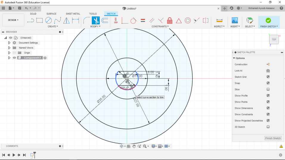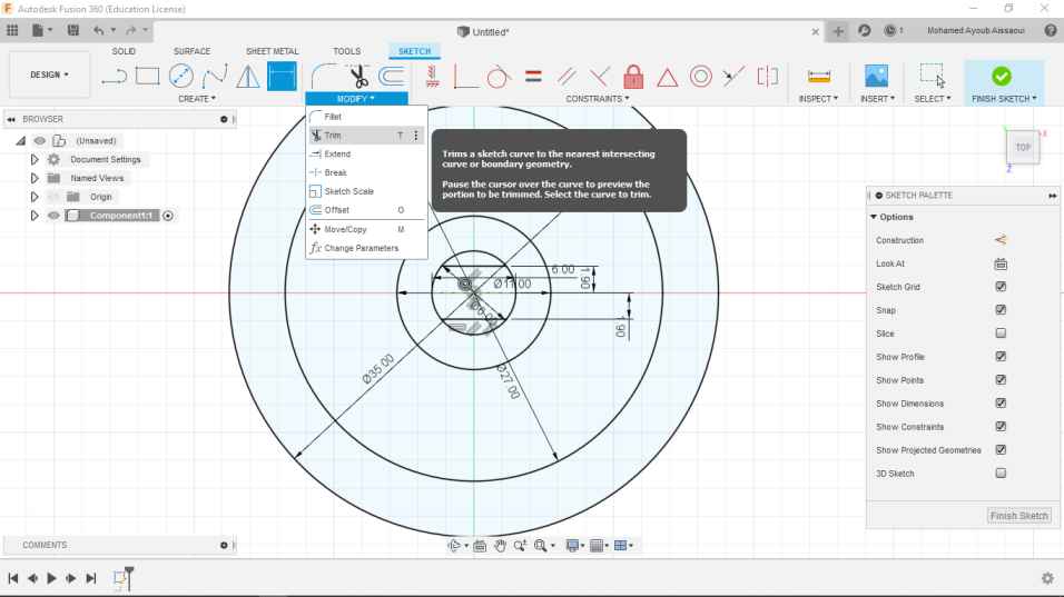 1- I started by designing 4 circles into each others then i used the trim tool to erase the extra parts :