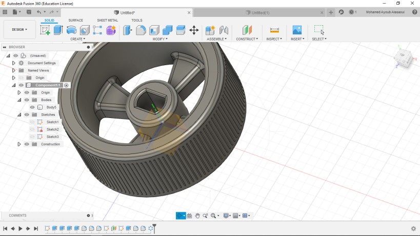 For the individual assignement i choose to design a wheel for my final project robot, so i started modeling the wheel using Fusion 360 software, below are the steps which i used to achieve the final result of my design :