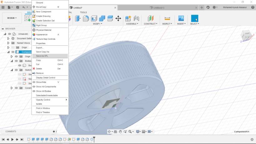 6- At the end i got a beautiful whell for my robot , after that i exported the file as an STL format .