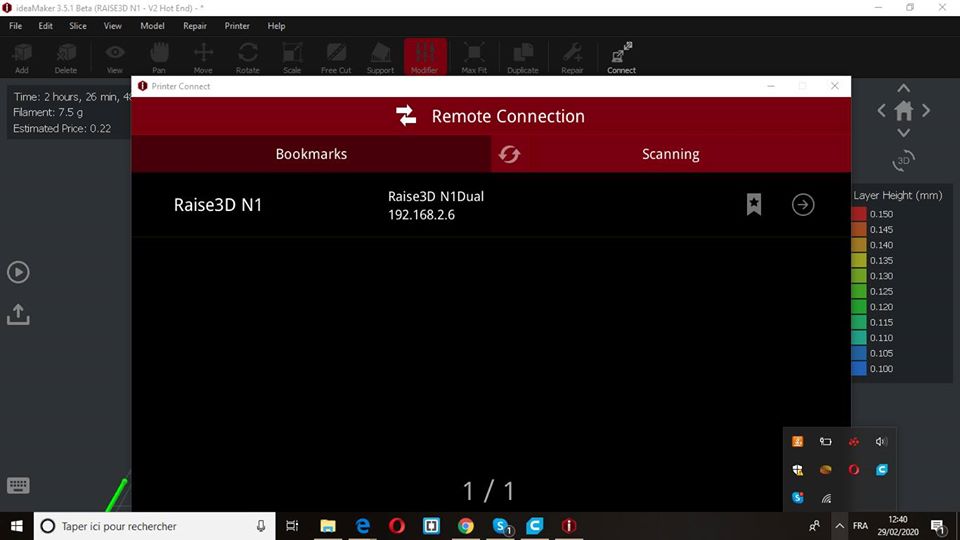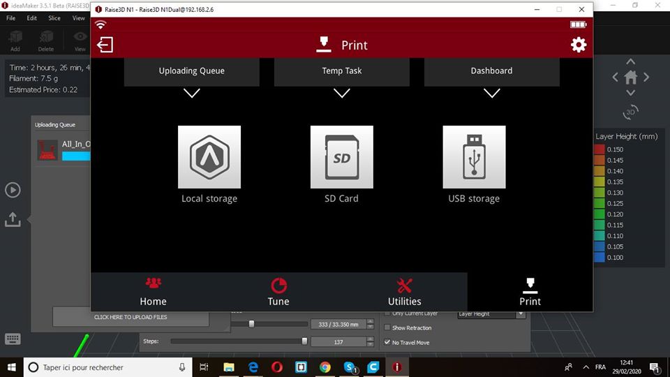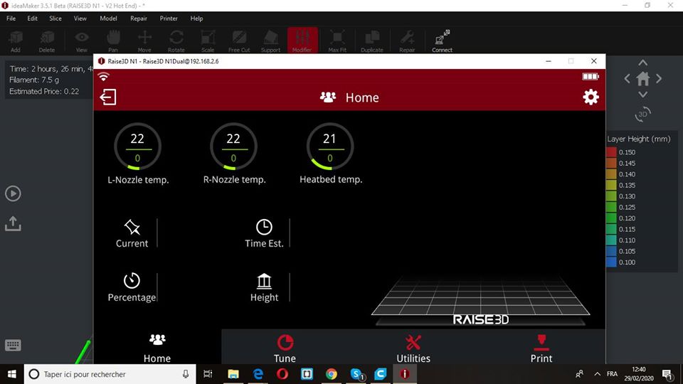 4- we connected the software with the 3D raise printer using the WI-FI to start the printing opperation :