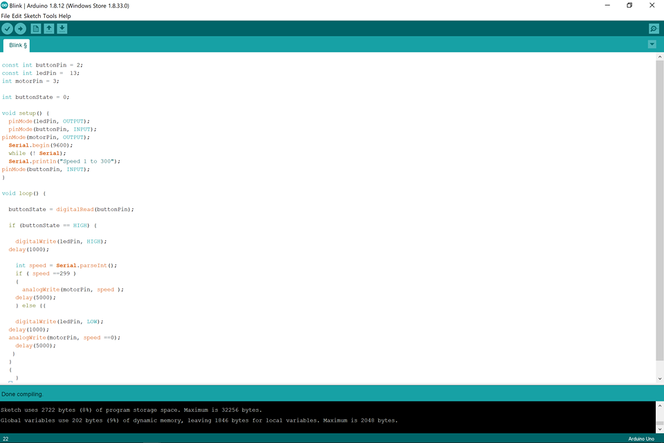 I used my Hello board to blink it’s LED using the C programming so for more details about the ship , the board and how to link it with the arduino to upload the code you can check my 7th week electronics design .