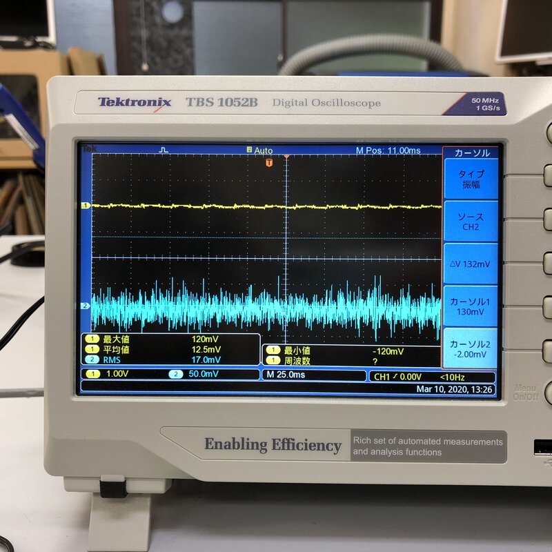 Then I connected the ground of oscilloscope and started to adjust the displayed wave.
